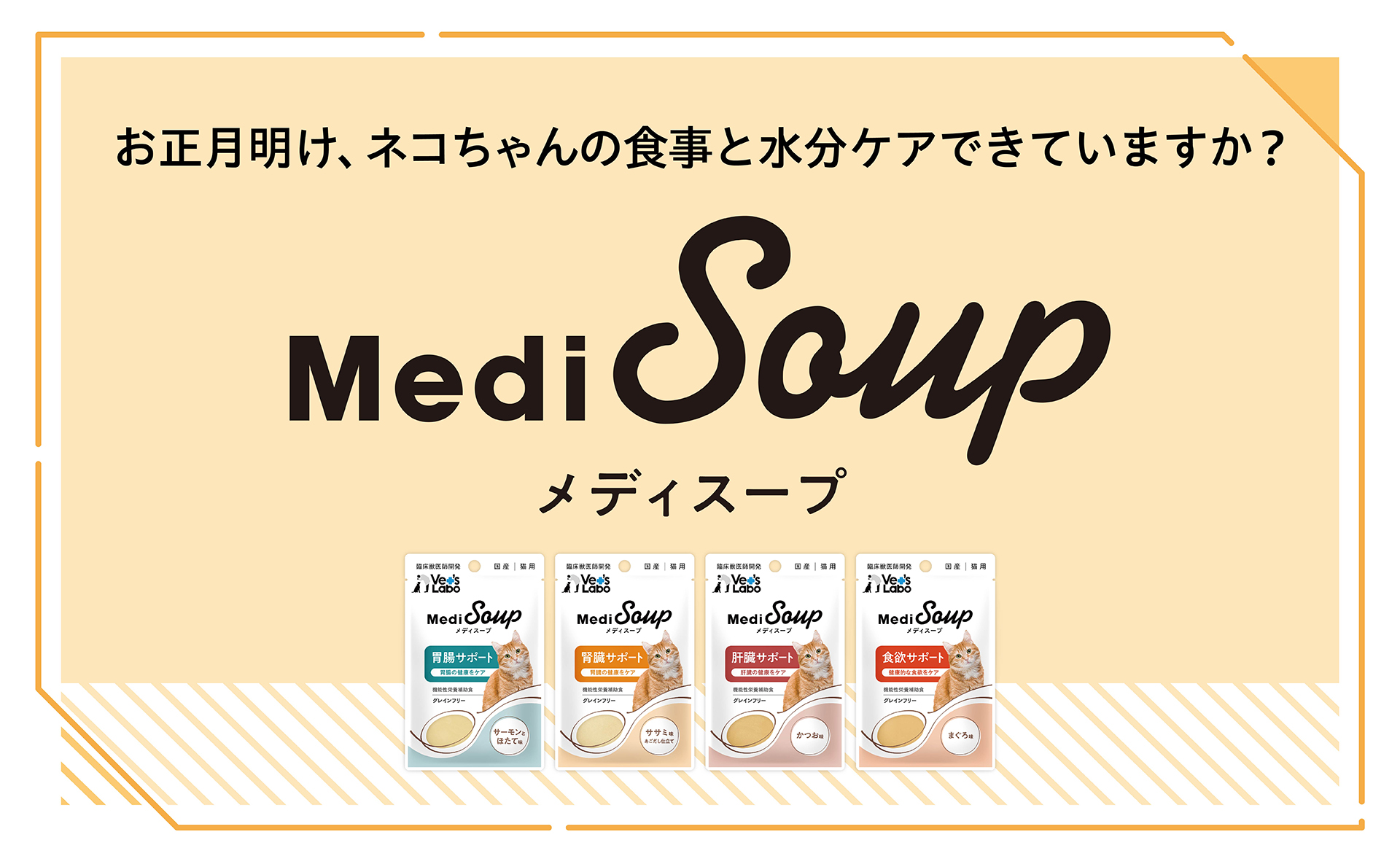 食事量が減ってきたネコちゃんや、 いつものご飯に飽きてしまったネコちゃん、 サプリメントをなかなか受け入れてくれないネコちゃんにも、 「美味しく食べてもらいたい」という想いが込められています。