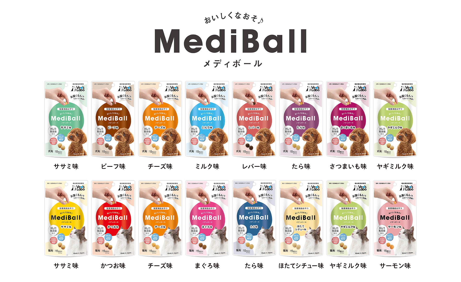 そこで、獣医師としての臨床経験や現場の声を反映して開発されたのが、**Vet’s Labo(ベッツラボ)**の投薬補助おやつ「メディボール(MediBall)」と「メディジャム(MediJam)」です。
