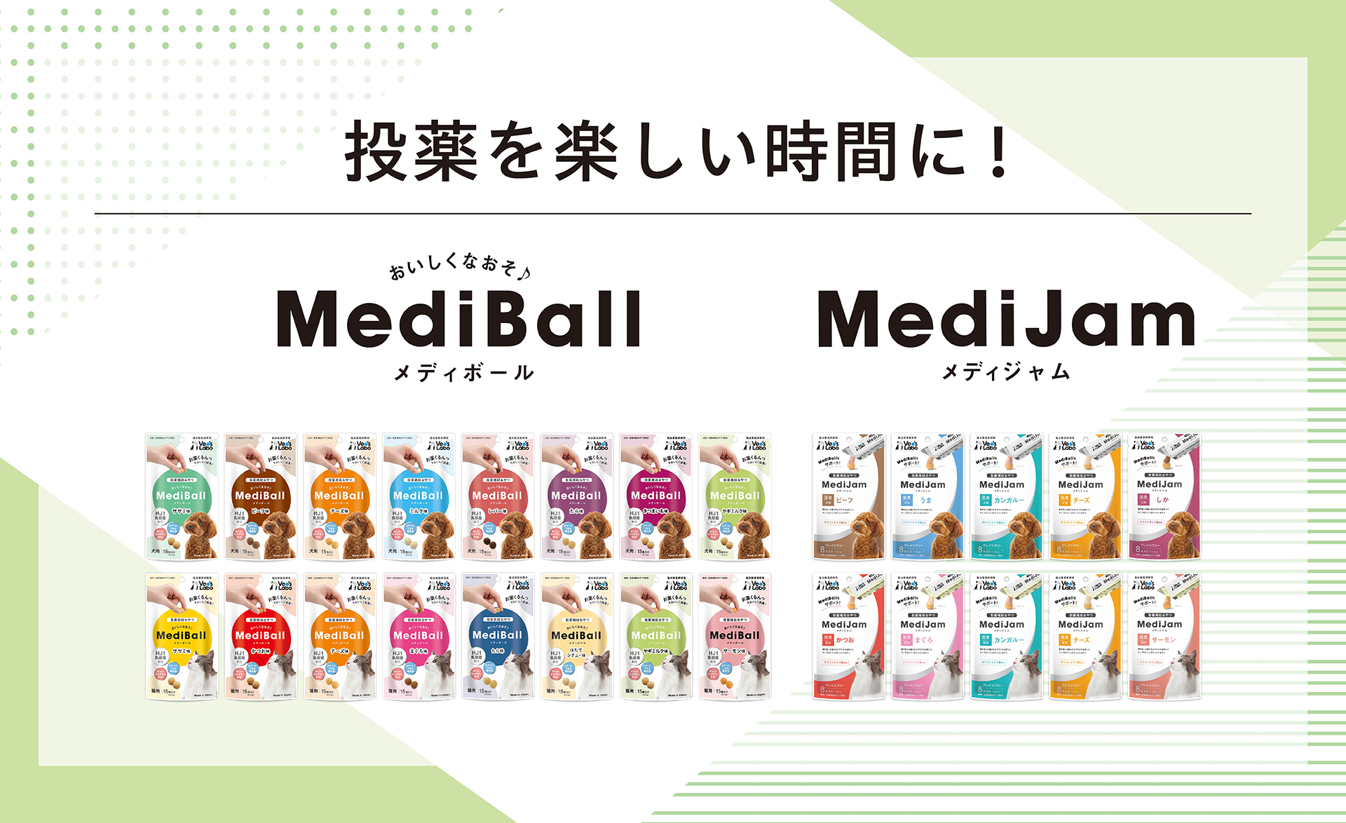 メディボールとメディジャムは、嗜好性と使いやすさを両立した投薬補助おやつであり、ペットの種類や薬の形状、飼い主のライフスタイルに合わせて使い分けることで、投薬成功率の向上に貢献します。治療を継続する上での“投薬ストレス”を軽減し、より良いケア体験を提供するためのツールとしておすすめできる逸品です。