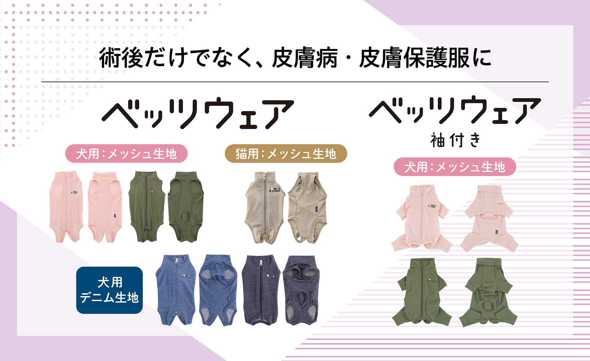 皮膚トラブルは、舐める・掻くという行為で一気に悪化します。ベッツウェアは、ペットの負担を減らしながら、その悪化のサイクルを断ち切るための「やさしい解決策」です。
